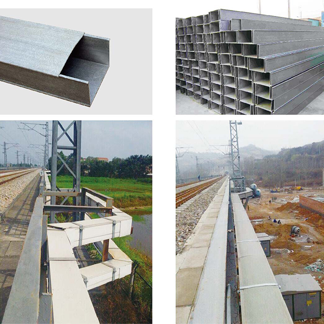广泛用于铁路、公路、地铁、隧道、市政建设、桥梁、电力、石油、化工、计算机电缆、邮电通讯电缆等行业。它具有保护电缆、绝缘性能好、隔热、耐寒、阻燃、耐老化、耐腐蚀、耐酸碱等特点。玻璃钢电缆槽重量轻,承载力大,一般只有钢质电缆槽重量的1/4,水泥制电缆槽重量的1/10。安装方便且成本低,施工中无需动火。适用于高寒地区,高原地区,高山地区。耐腐蚀、耐酸碱,有钢制电缆槽无法比拟的优越性。使用寿命达30-50年。